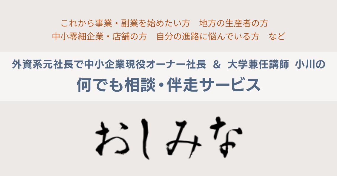 こんにちは。初めまして。有限会社ハーモニーの小川と申します。 「おしみな」は2年半ほど前の2023年に立ち上げたのですが、その後全く何もせず放置していた何でも相談・伴走サービスです。このところ、時々悩みの相談を受けること…